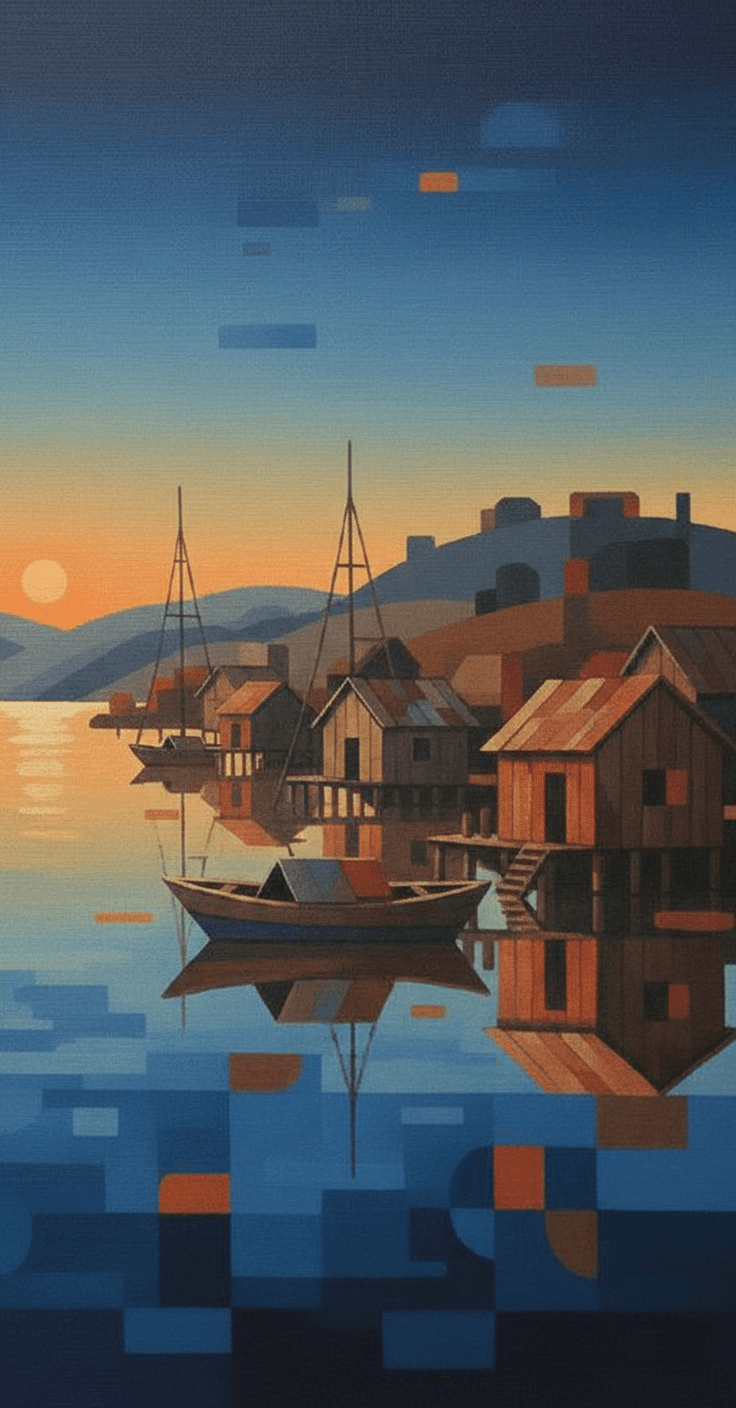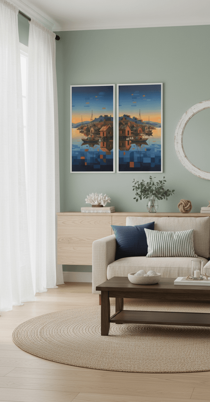 Диптих "Рыбацкая деревня" холст/акрил 80х2х40. 2026
