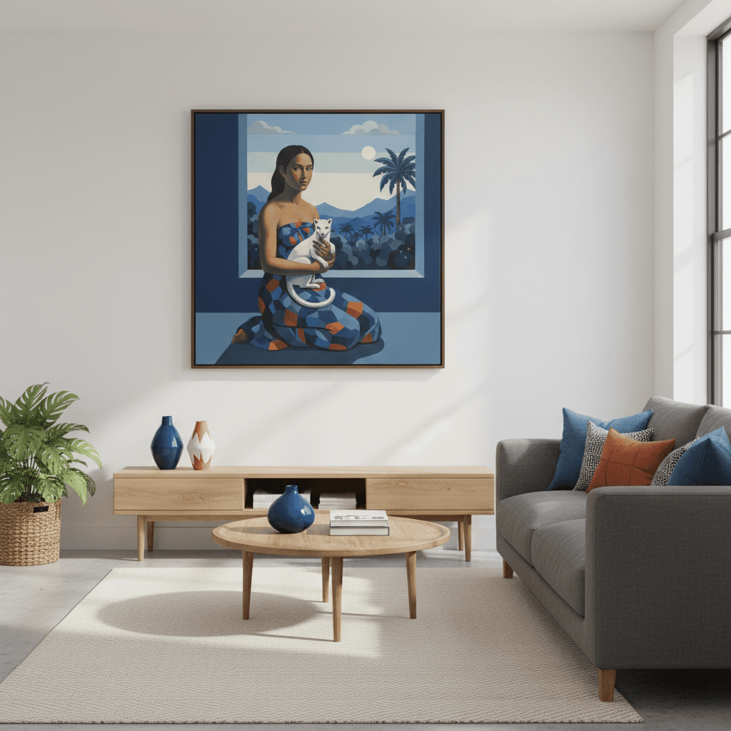 Оммаж известной картины Леонарда да Винчи «Дама с горностаем». Оммаж позволяет художнику вступить в прямой диалог с тем, что стало эталоном в искусстве. Это не подмена оригинала, а ремесленная и концептуальная реплика, которая транслирует уважение, сомнение или переосмысление. холст/акрил, 110х4х110, 2025г